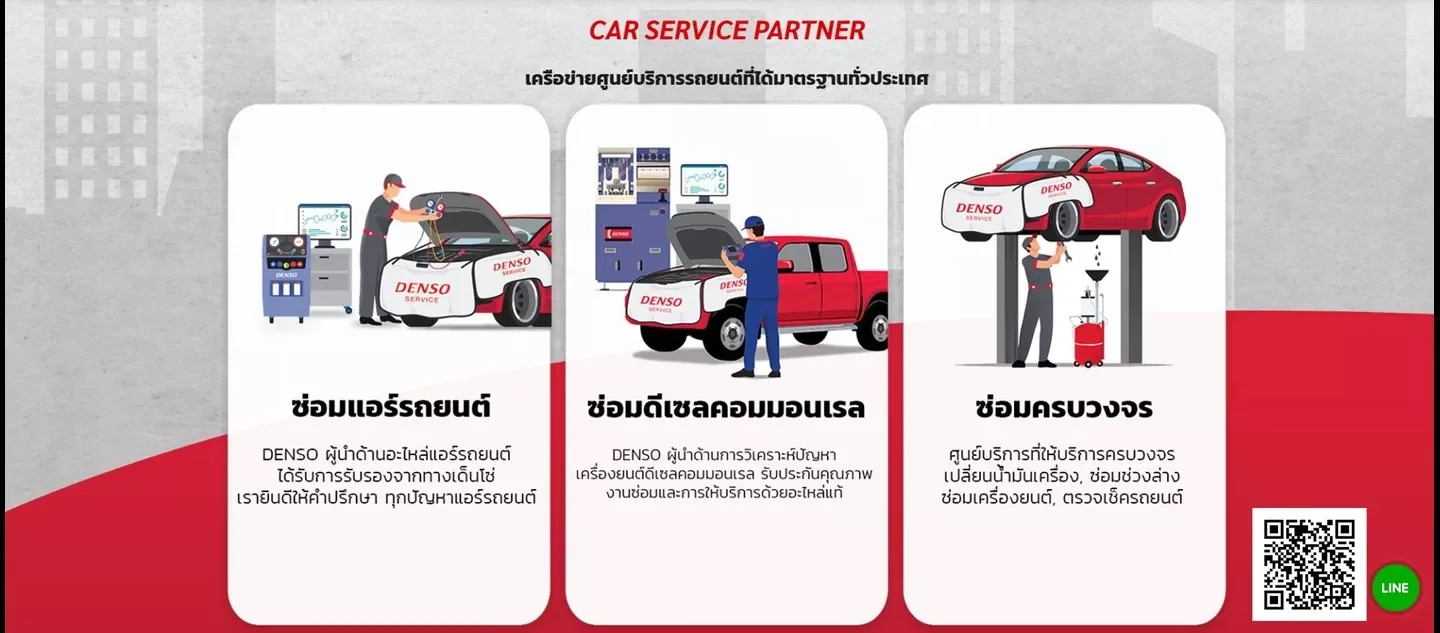 ที่ PIT&GO AUTOSERVICE งานซ่อมของเราดำเนินภายใต้มาตรฐานของ DENSO THAILAND มั่นใจได้ว่าอะไหล่และงานซ่อมเป็นไปตามข้อกำหนดของศูนย์บริการรถยนต์ระดับสากล